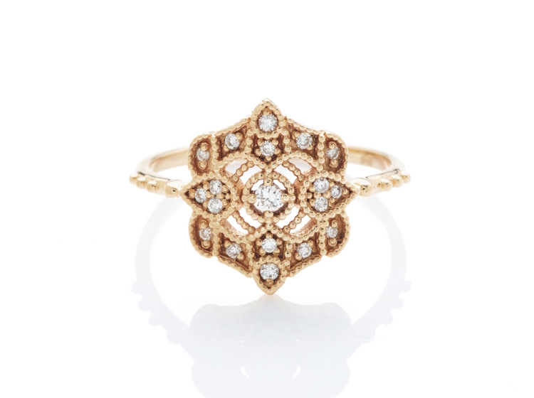The brand was born from the fusion of refined, seductive design and a contemporary touch, echoing the elegance of today’s modern woman. Angèle Brousse plays with the delicacy of fine lines and micro-beading, revisiting the angular shapes of stars and crosses, and bringing a meticulous approach in which every detail counts to the pieces of jewellery she designs and creates. The finesse of their execution means they can be considered “second skin” jewellery.