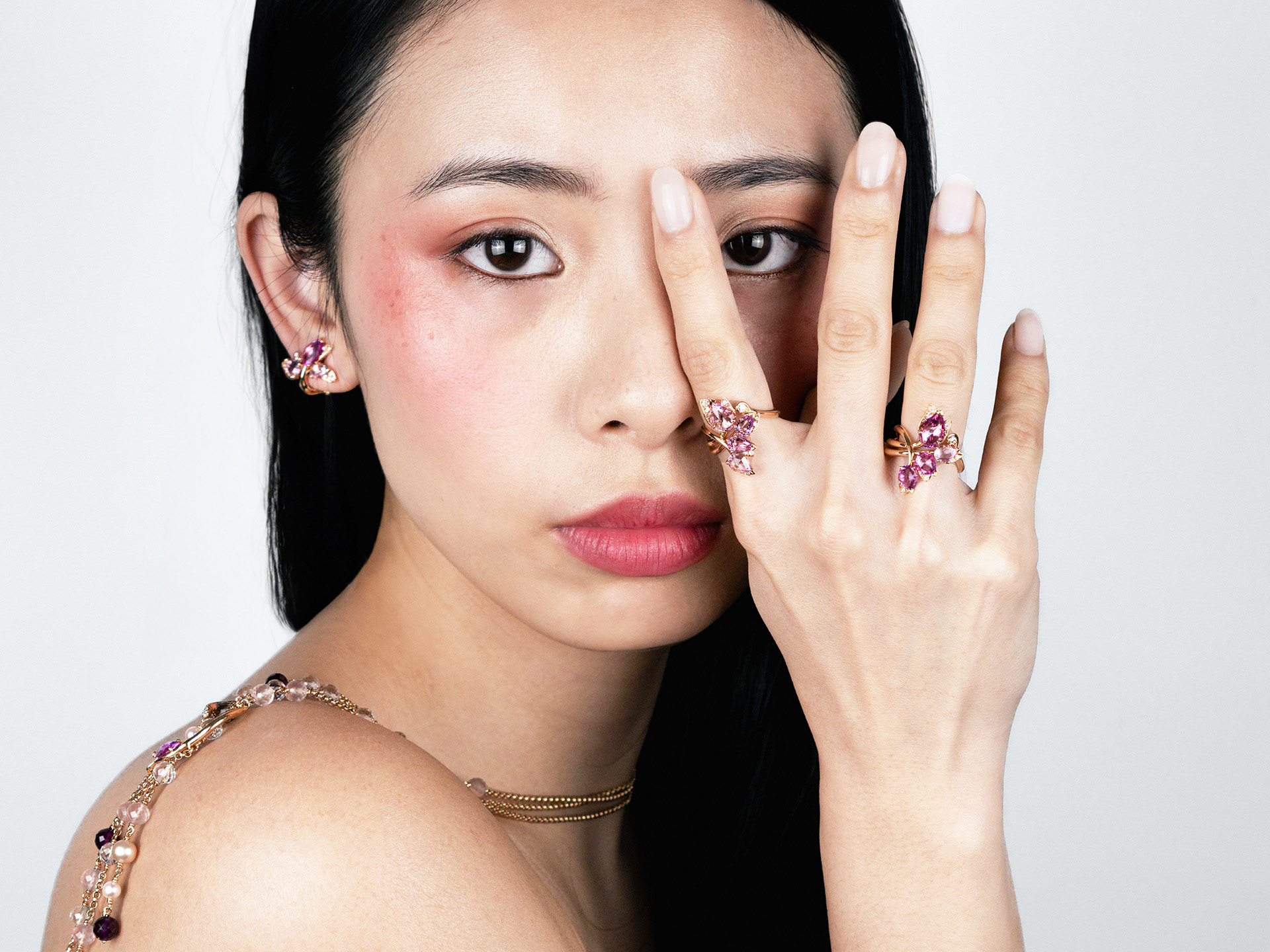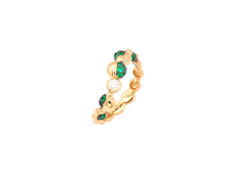Emblematic of the naturalist style of the House, the Florilège collection seems like a huge bouquet of flowers from gardens and fields, which you add to on walks through the seasons. This floral line expresses sculptural shapes through corollas and petals, highlighting a vast array of coloured gemstones.