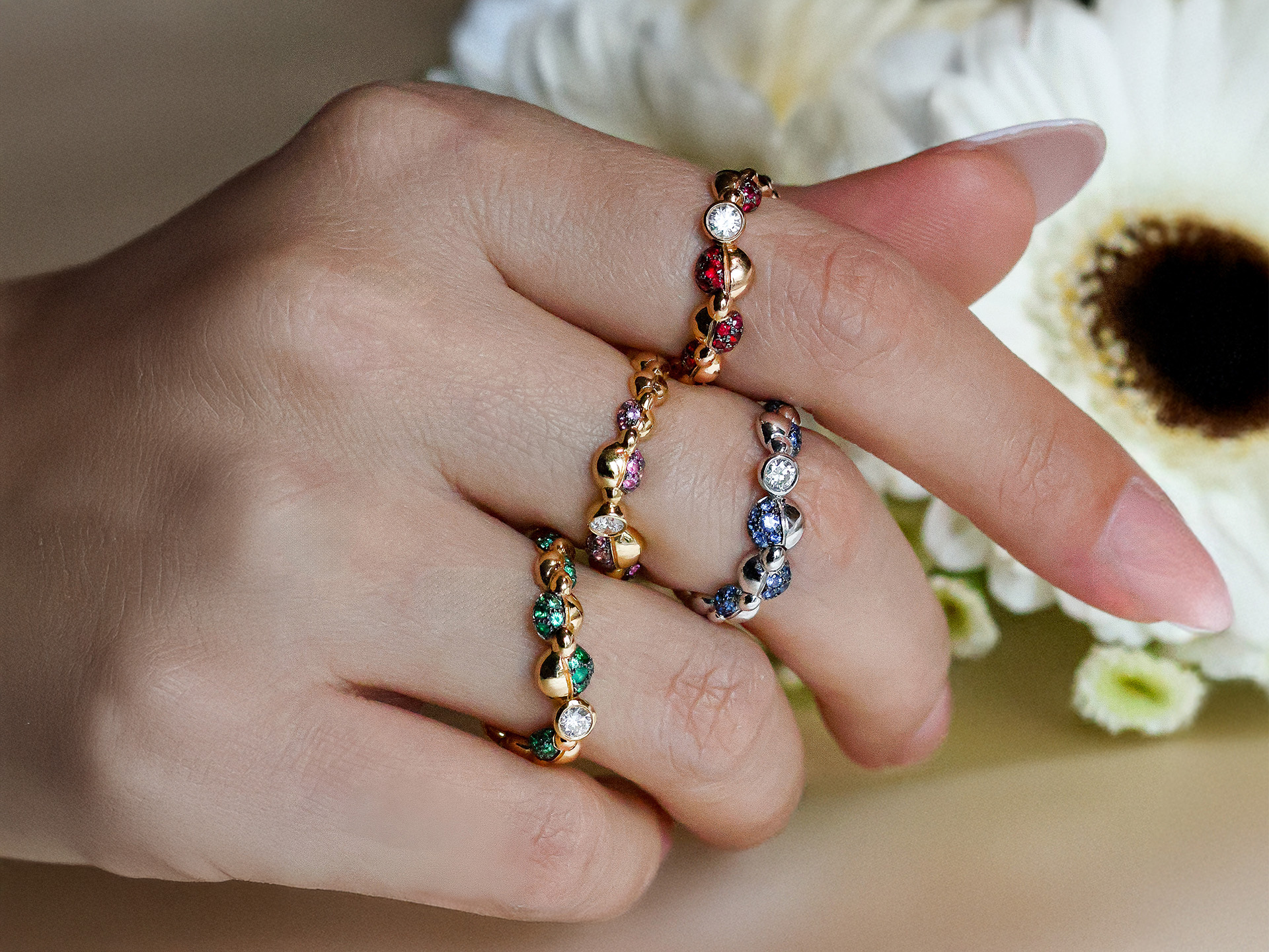 Finally, Les Intemporelles reunites sober jewels with sleek and contemporary lines. These elegant and colourful creations can be worn alone or with others every day.