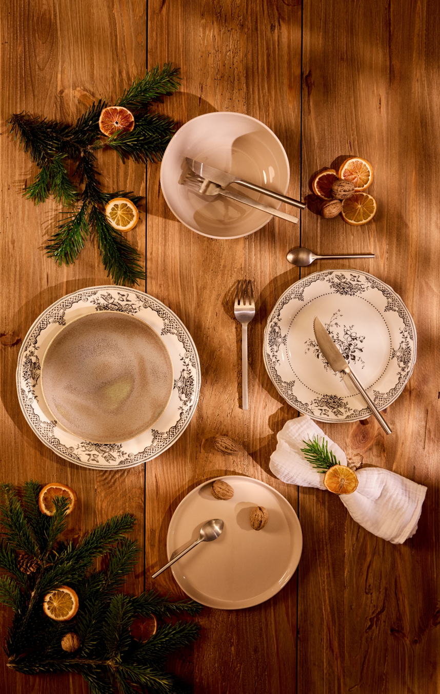 Cette saison, dresser la table pour les fêtes nous plonge dans nos souvenirs d'enfance. Un hommage aux gestes simples, à la main qui façonne et aux réminiscences de l’enfance, qui resurgit sans prévenir dans une ambiance chaleureuse et généreuse.