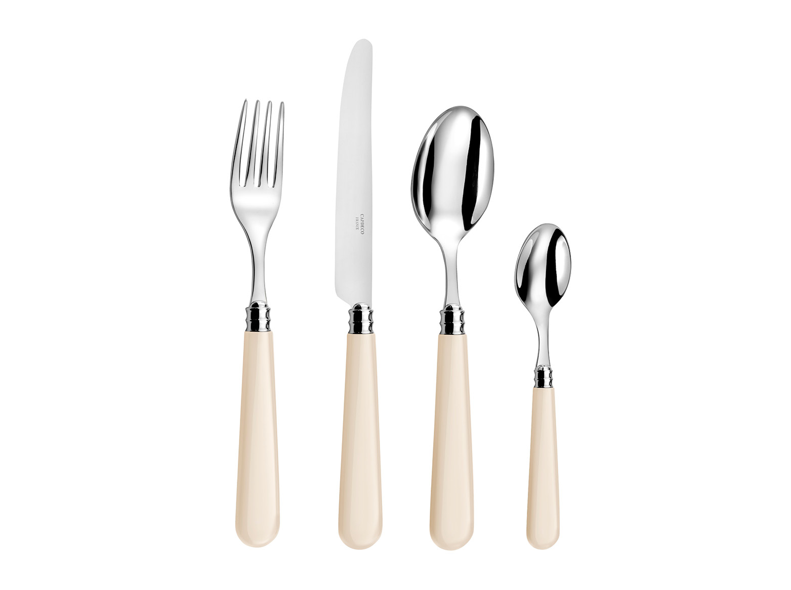 Les manches des couverts se parent également de couleurs pastel légèrement acidulées tels des sucres d’orge, parmes chez Sabre, bleus chez Capdéco ou Claude Dozorme avec sa gamme au nom évocateur Berlingot.